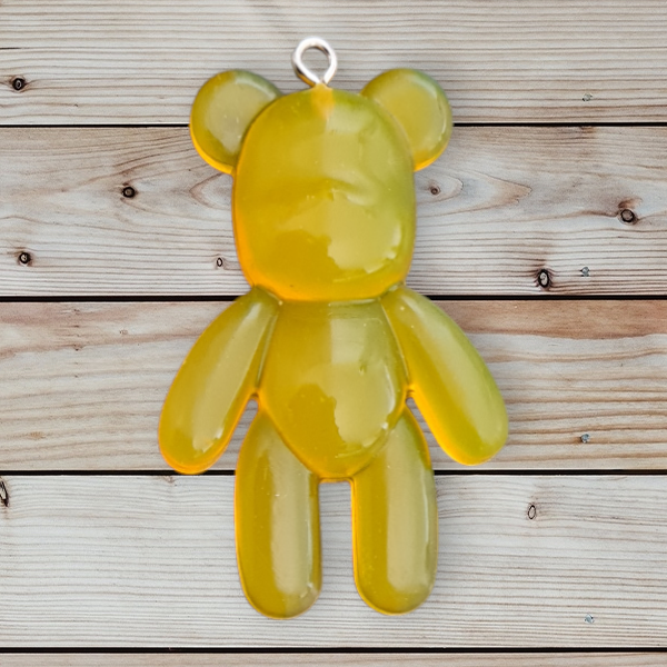 L'ours jaune transparent est une figurine adorable, légère et délicate, idéale pour être portée comme pendentif ou breloque. Ajoute une touche de fantaisie et de gaieté à votre tenue.